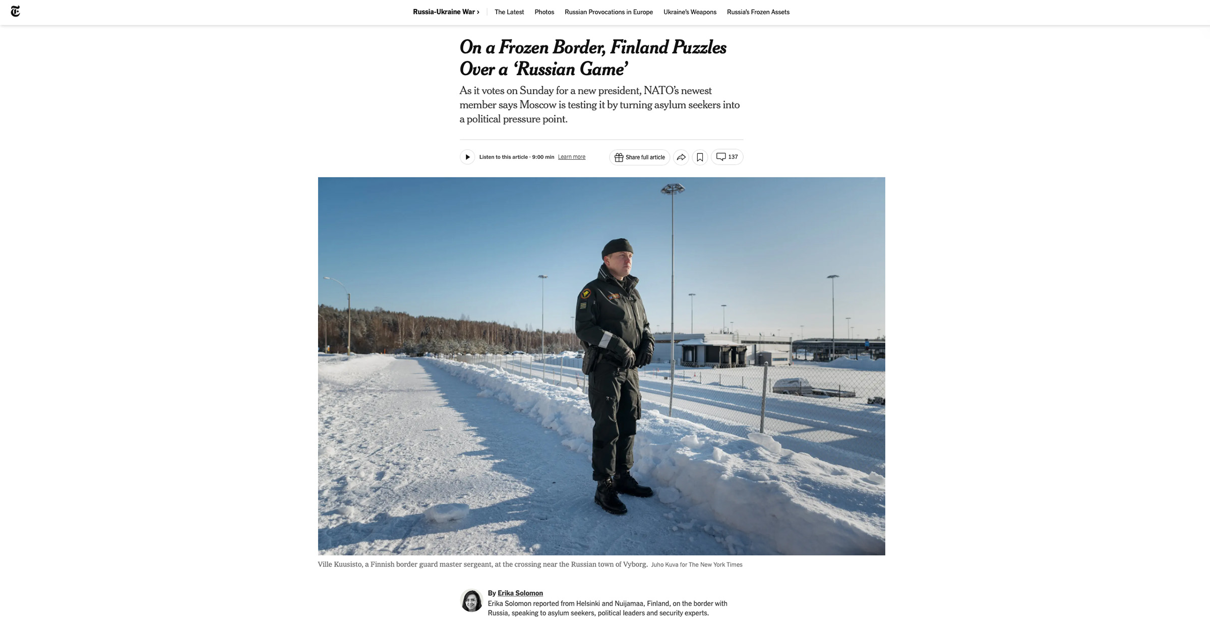 THE NEW YORK TIMES / FINLAND MIGRANTS